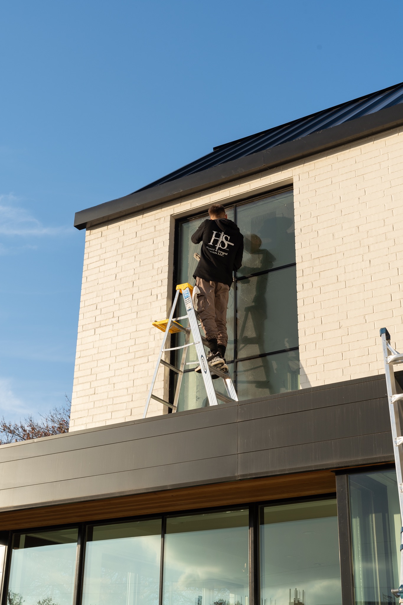 By the end of the day, every window gleamed—from the front-facing glass to the hidden skylights that flooded the upstairs studio with natural light. Reflections were sharp, no streaks or smudges remained, and the homeowners were thrilled with how the cleaned windows showcased the minimalist architecture.