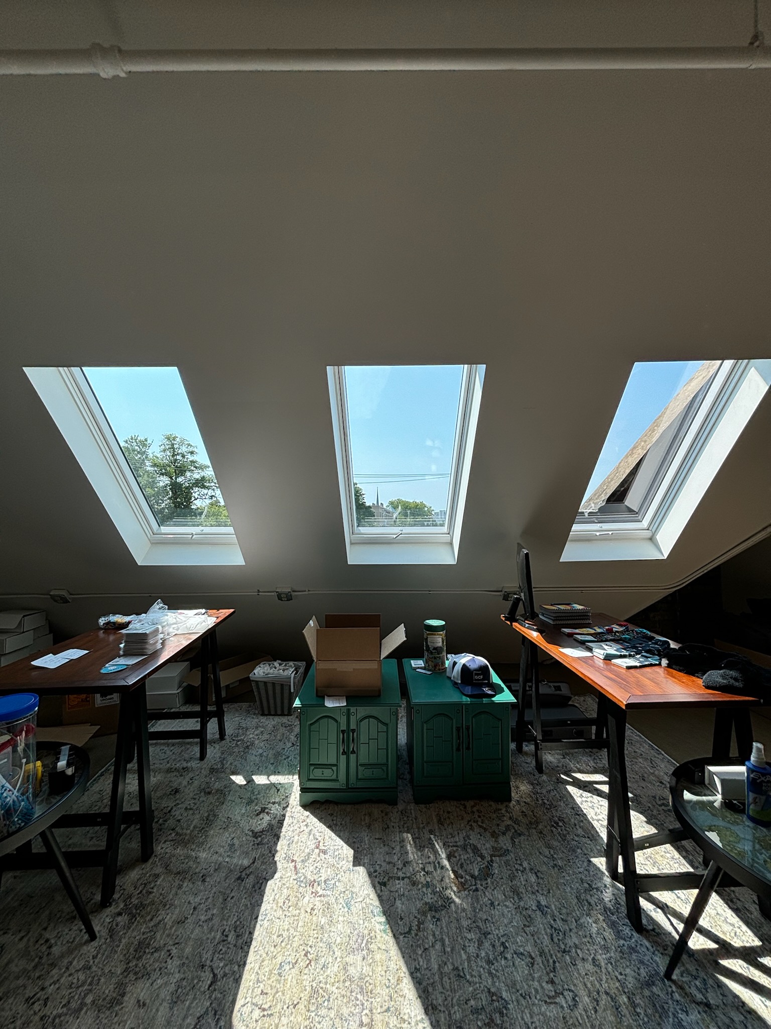- Skylights angled along the upper level